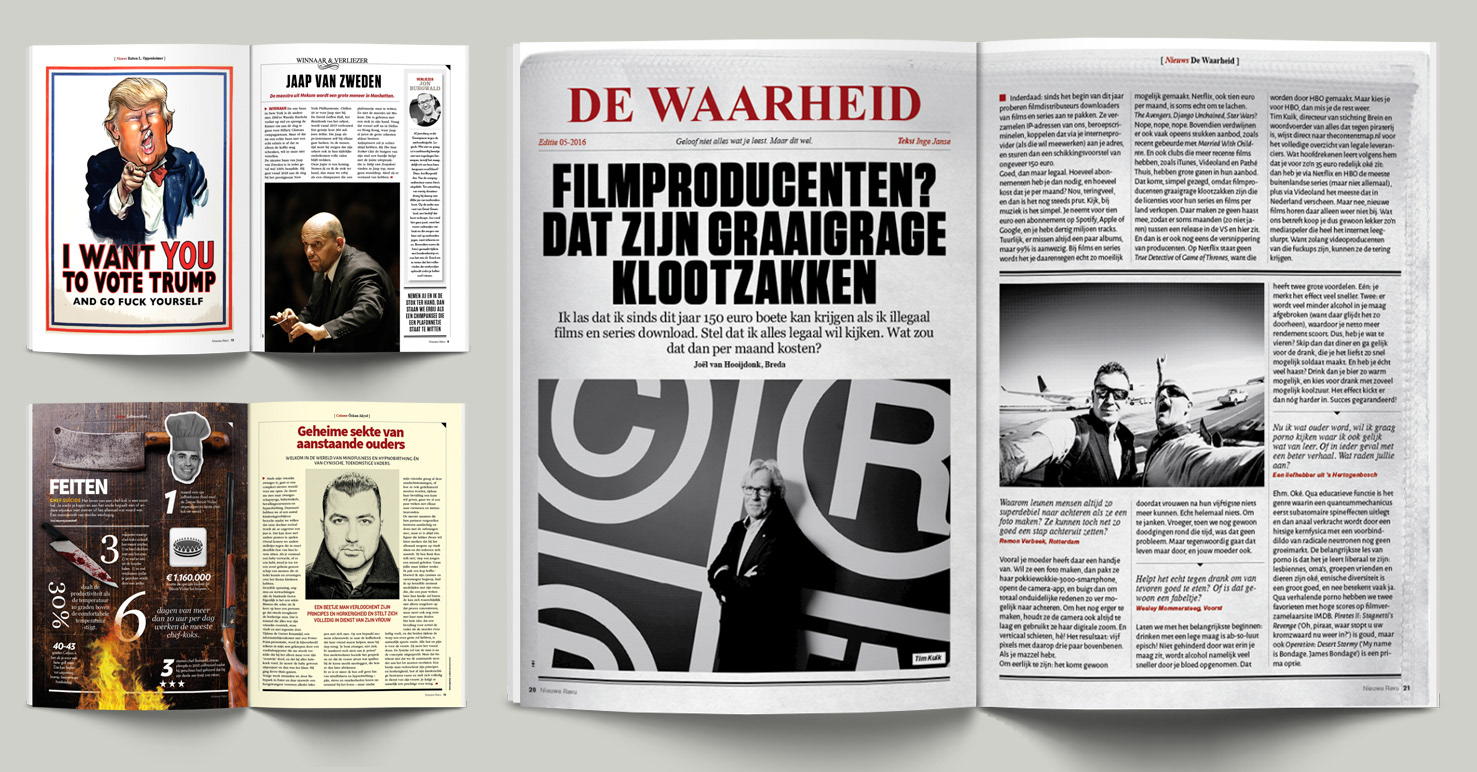Heb in totaal meer als 250 Nieuwe Revu's gemaakt, en ook de Art Direction gedaan. Daarnaast ook twee restyle's uitgevoerd, dus hierbij een kleine selectie van de verschillende lay-outs voor Nieuwe Revu periode 2013/2016.