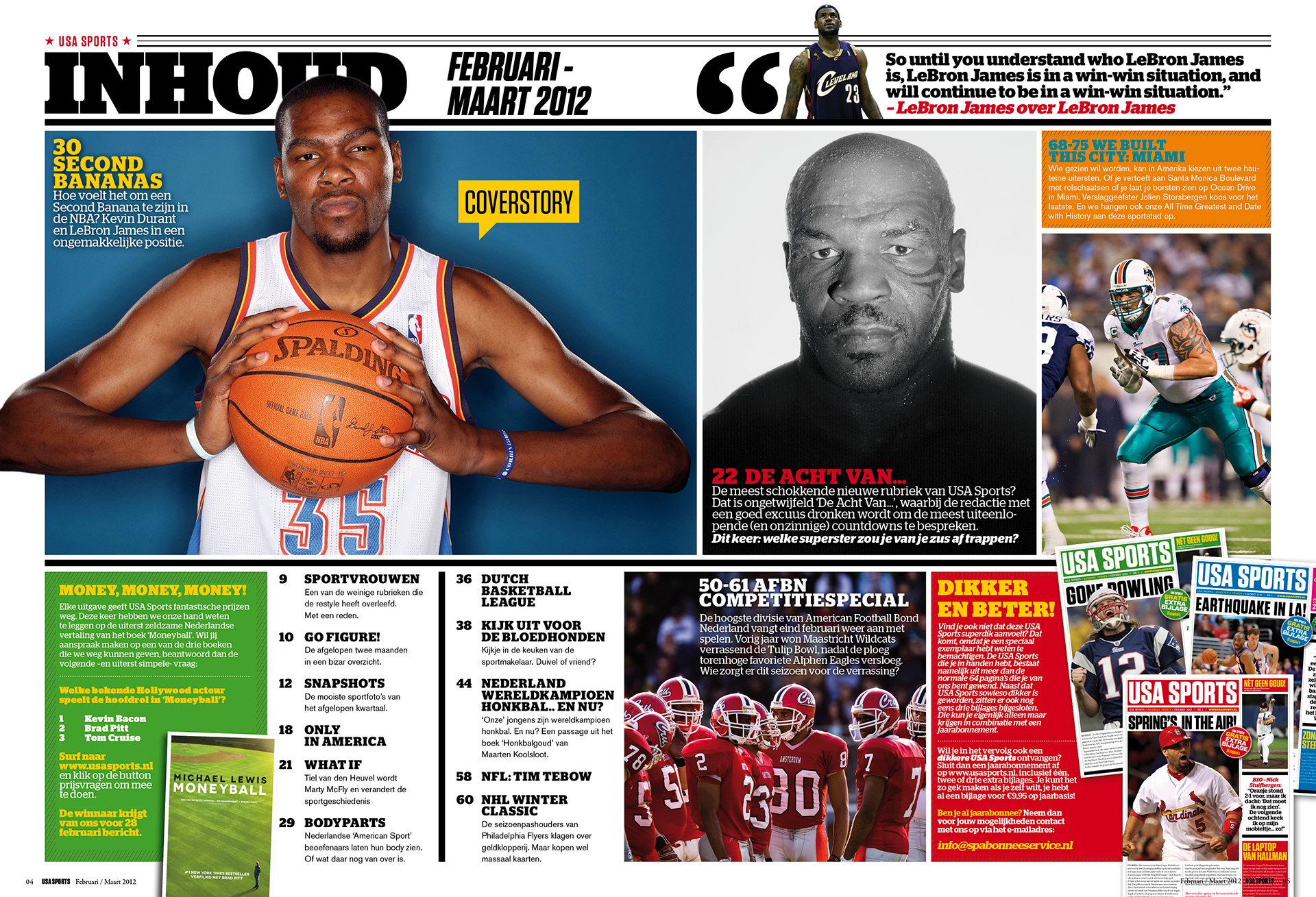 Art Direction & Ontwerp gehele magazine voor de ESPN titel USA SPORTS Nederland. Het beste magazine over Amerikaanse sporten van Nederlandse bodem.